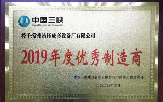 熱烈祝賀我公司在白鶴灘水電站工程中被授予 “2019年度優秀制造商”的光榮稱號