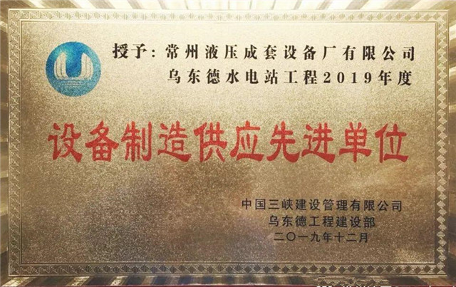 熱烈祝賀我公司在烏東德水電站工程中被授予“設備制造供應先進單位”的光榮稱號